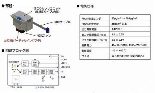 鑒于當(dāng)前東亞地區(qū)嚴(yán)重的空氣污染形勢,夏普宣布,將于2014年2月開始發(fā)售PM2.5檢測模塊DN7C3JA001,售價為10500日元。這款檢測模塊具有檢測PM2.5以及更大的顆粒物的功能,并且具有世界上最短的檢測時間。