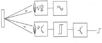 發(fā)送器對(duì)準(zhǔn)目標(biāo)發(fā)射光束,發(fā)射的光束一般來源于半導(dǎo)體光源,發(fā)光二極管(LED)、激光二極管及紅外發(fā)射二極管。光束不間斷地發(fā)射,或者改變脈沖寬度。接收器有光電二極管、光電三極管、光電池組成。在接收器的前面,裝有光學(xué)元件如透鏡和光圈等。在其后面是檢測(cè)電路,它能濾出有效信號(hào)和應(yīng)用該信號(hào)。