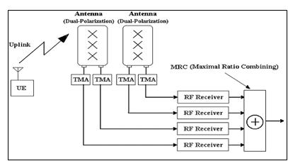 在郊區(qū)和農(nóng)村等地方使用四天線分集,有利于增加基站覆蓋范圍;