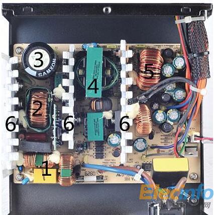 某電源的內(nèi)部結(jié)構(gòu)圖,序號1~6分別標識出了大家應(yīng)該著重觀察的部分。