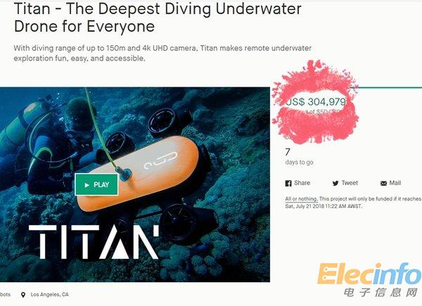 水下無(wú)人機(jī)泰坦眾籌總額已破30萬(wàn)美金