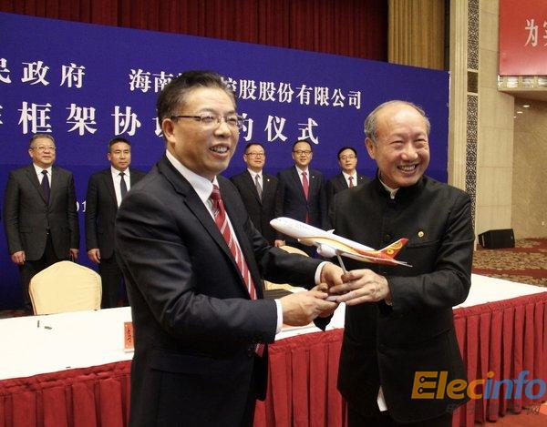 當天,海南航空控股股份有限公司與烏魯木齊市人民政府簽署戰(zhàn)略合作框架協(xié)議。雙方計劃結(jié)合各自優(yōu)勢做大做強烏魯木齊航空,將烏魯木齊航空打造成為貫徹落實國家“一帶一路”倡議、擴大對外開放的重要平臺。烏魯木齊市委副書記、市長牙生·司地克,烏魯木齊市委副書記、常務副市長高峰,烏魯木齊市委常委、秘書長謝少迪,新疆機場(集團)有限責任公司黨委副書記、副董事長、總經(jīng)理、烏魯木齊市副市長馬伊磊;海航集團副董事長兼總裁張嶺,海航集團董事、海航航空董事長包啟發(fā),海航航空總裁兼財務總監(jiān)劉璐,烏魯木齊航空董事長韓錄海等雙方領導出席會談及簽約儀式。