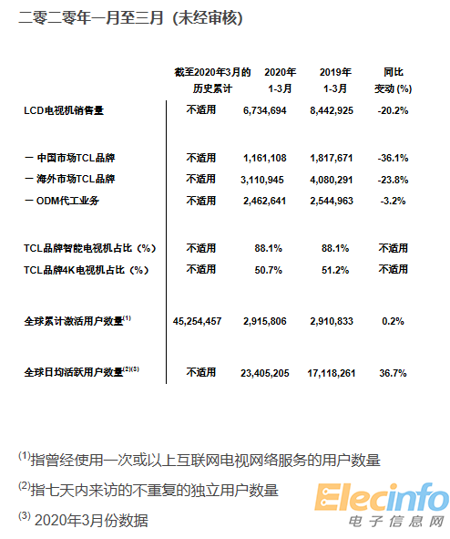 TCL電子2020年首季度電視機銷售量達673萬臺