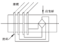 將專用的測扭應(yīng)變片用應(yīng)變膠粘貼在被測彈性軸上,并組成應(yīng)變橋,若向應(yīng)變橋提供工作電源即可測試該彈性 軸受扭的電信號(hào)。這就是基本的扭矩傳感器模式。(見圖二)但是在旋轉(zhuǎn)動(dòng)力傳遞系統(tǒng)中,最棘手的問題是旋轉(zhuǎn)體上的應(yīng)變橋的橋壓輸入及檢測到的應(yīng)變信號(hào)輸出如 何可靠地在旋轉(zhuǎn)部分與靜止部分之間傳遞,通常的做法是用導(dǎo)電滑環(huán)來完成。