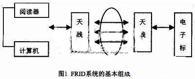 無線射頻識別技術(shù)(RFID)又稱為電子標(biāo)簽,是一種非接觸式的自動識別技術(shù),它通過射頻信號自動識別目標(biāo)對象并獲取相關(guān)數(shù)據(jù),無需在識別系統(tǒng)與特定目標(biāo)之間建立機械或光學(xué)接觸。RFID可識別高速運動貨物并可同時識別多個標(biāo)簽,操作快捷方便。RFID是一個簡單的無線系統(tǒng),通常由三個基本部分組成,如圖1所示,分別為電子標(biāo)簽(Tag)、閱讀器(Reader)和天線(antenna)。在實際應(yīng)用過程中,電子標(biāo)簽將被固定在被識別的貨物表面或內(nèi)部,當(dāng)帶有電子標(biāo)簽的目標(biāo)貨物進(jìn)入閱讀器的可讀區(qū)間時,閱讀器將自動將電子標(biāo)簽中所賦予的信息獲取出來,從而實現(xiàn)貨物的自動識別功能。