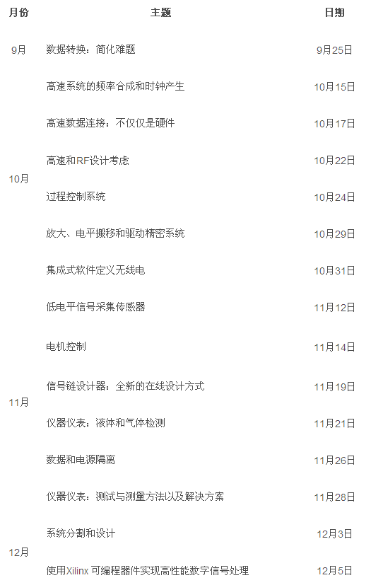 ADI 2013在線設(shè)計(jì)峰會(huì)作為ADI今年5月于北京、深圳兩地成功舉辦的ADI 2013設(shè)計(jì)峰會(huì)的網(wǎng)絡(luò)延伸,旨在讓參與者不受地域限制,實(shí)現(xiàn)與ADI技術(shù)專家實(shí)時(shí)互動(dòng)。自9月25日峰會(huì)開幕以來(lái),已舉行多場(chǎng)包括數(shù)據(jù)轉(zhuǎn)換系統(tǒng)設(shè)計(jì)、高速系統(tǒng)的頻率合成和時(shí)鐘產(chǎn)生等高級(jí)技術(shù),以及過(guò)程控制系統(tǒng)的參考設(shè)計(jì)分享等在內(nèi)的主題研討。在講解過(guò)程中,ADI備受尊敬的業(yè)界專家向與會(huì)者介紹了信號(hào)處理領(lǐng)域的最新設(shè)計(jì)趨勢(shì)和技術(shù)創(chuàng)新,并在問(wèn)答環(huán)節(jié)實(shí)時(shí)解答與會(huì)者提問(wèn),輔以相關(guān)領(lǐng)域的應(yīng)用案例、參考設(shè)計(jì)和解決方案等技術(shù)資料,讓所有參會(huì)者對(duì)研討會(huì)中提及的設(shè)計(jì)理念及解決方案有更為全面的了解。此項(xiàng)舉措獲得與會(huì)工程師的積極響應(yīng)與廣泛好評(píng)。