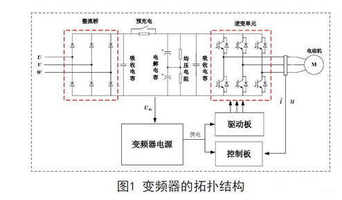 變頻技術(shù)目前得到了廣泛的應(yīng)用,而變頻器的可靠穩(wěn)定運行決定了變頻器性能指標(biāo),作為基礎(chǔ)硬件,變頻器電源的高效可靠運行至關(guān)重要。如圖1所示為變頻器的拓撲結(jié)構(gòu),主要由整流單元、預(yù)充電電路、制動單元和逆變單元組成,從圖中可知,變頻器電源為驅(qū)動電路和控制電路提供直流電源,驅(qū)動電路則為逆變單元提供驅(qū)動能力強響應(yīng)速度快的驅(qū)動脈沖,因而設(shè)計高效可靠變頻器電源硬件顯得尤為重要。