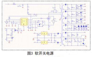 開關(guān)電源的軟開關(guān)主要是通過C5、C6、C7和初級繞組電感Lp組成的準(zhǔn)諧振電路來實現(xiàn),具體的器件參數(shù)需根據(jù)開關(guān)電源的開關(guān)頻率來計算;同時第④腳電流檢測實現(xiàn)過流保護;;第⑧腳通過R16和C18進行啟動時的過壓鎖定,實現(xiàn)開關(guān)電源軟啟動;通過 TL431組成的反饋回路實現(xiàn)輸出電壓的穩(wěn)定。
