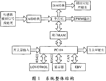 機車制動控制單元(BrakeControlUnit,BCU)主要分為以下幾個部分:模擬量輸入、模擬量輸出、數字量輸入、數字量輸出、PWM輸出、微處理器部分以及與外圍部分的通信等,系統(tǒng)整體結構圖如圖1所示。
