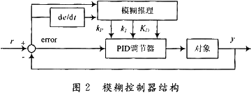 根據模糊數學的理論和方法,將在現場獲得的調試經驗和技術知識總結成為IF(條件)、THEN(結果)形式的模糊推理規(guī)則,并把這些模糊規(guī)則及相關信息(如初始的PID參數)存入計算機。根據檢測回路的響應情況,計算出采樣時刻的偏差E和變化率Ec,運用模糊推理,進行模糊運算,即可得到該時刻的kP,kI,kD,實現對PID參數的最佳調整。