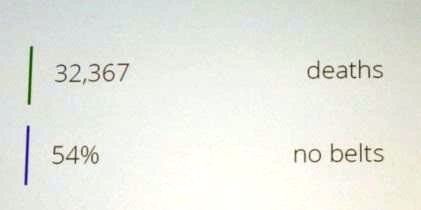 不過Medford的簡報內(nèi)容帶來了一個令人驚訝的轉折:在2011年,美國有3萬2,367人因為交通事故而喪生,其中有高達54%比例是因為沒有系安全帶: