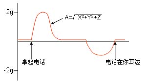 圖1. 移動(dòng)電話放到你的耳邊時(shí)的典型加速度波形。