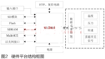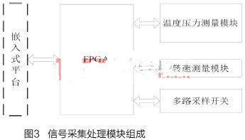 該模塊完成傳感器輸出信號(hào)的采集和數(shù)據(jù)處理工作,其結(jié)構(gòu)如圖3所示。嵌入式平臺(tái)通過數(shù)據(jù)總線讀取該模塊的數(shù)據(jù),計(jì)算出實(shí)時(shí)的測(cè)量值,同時(shí)利用軟件繪制出發(fā)動(dòng)機(jī)各個(gè)參數(shù)的試車曲線,記錄并保存測(cè)試數(shù)據(jù)。