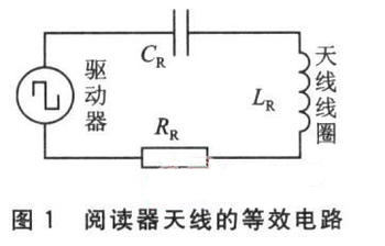 閱讀器基站天線是由電感、電容和電阻組成的串聯(lián)諧振電路,如圖1所示。其特性用諧振頻率fo和Q因子表示[3]。fo是RFID系統(tǒng)的工作頻率,由天線的電感和電容共同決定,可以由式(1)來計(jì)算: